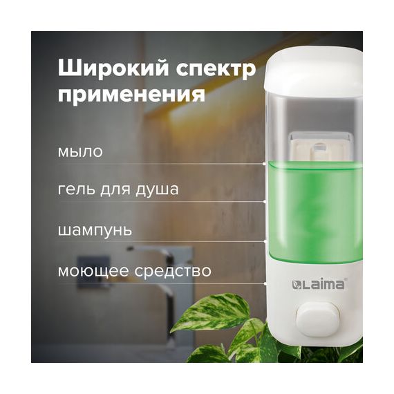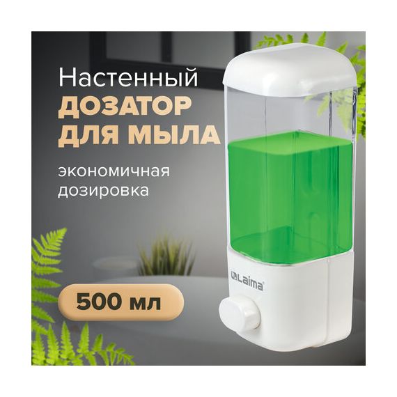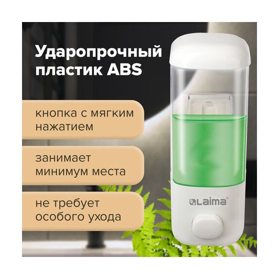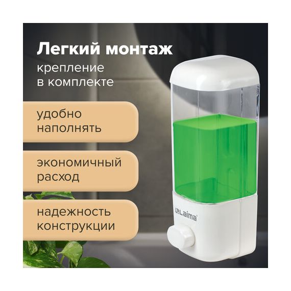Дозатор для жидкого мыла LAIMA, НАЛИВНОЙ, 0,5 л, белый, ABS-пластик, 601792