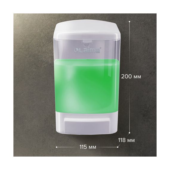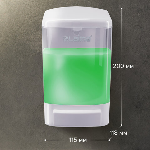 Корпус выполнен из пластика. Выдача мыла осуществляется экономичными порциями. Дозатор сочетается с расходными материалами других производителей. Имеется окно для контроля уровня мыла. В комплект входят крепежные материалы.