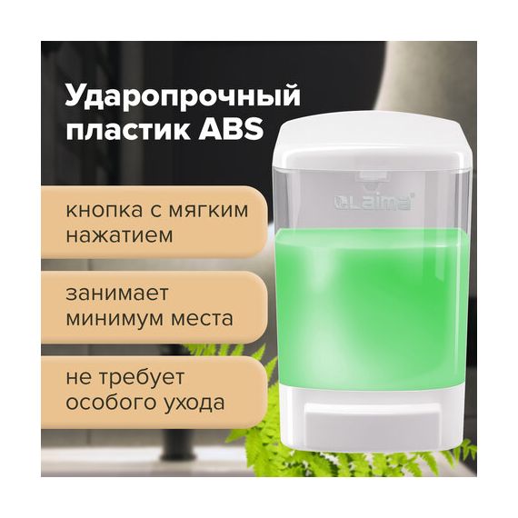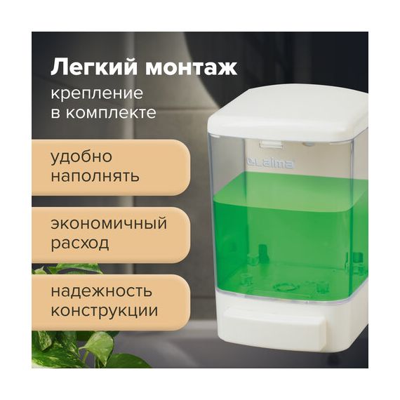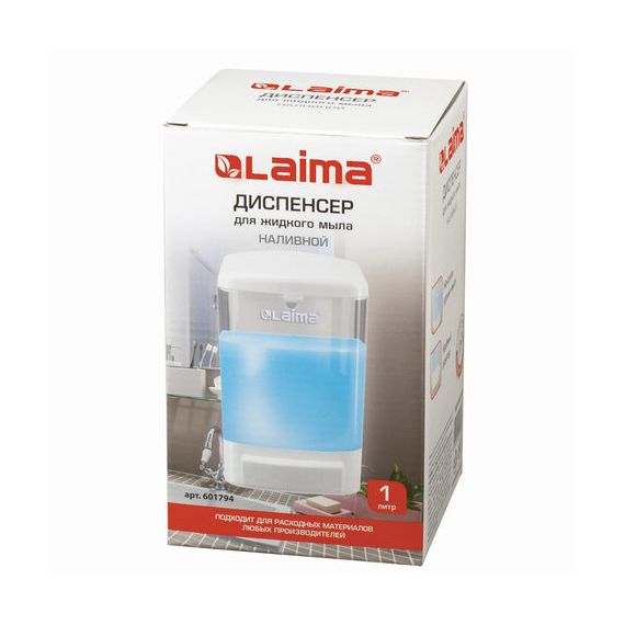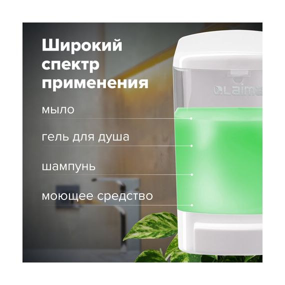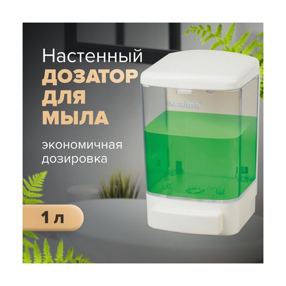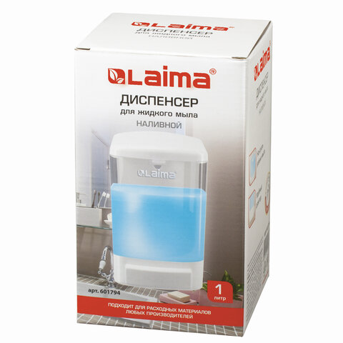 Дозатор для жидкого мыла LAIMA, НАЛИВНОЙ, 1 л, белый, ABS-пластик, 601794