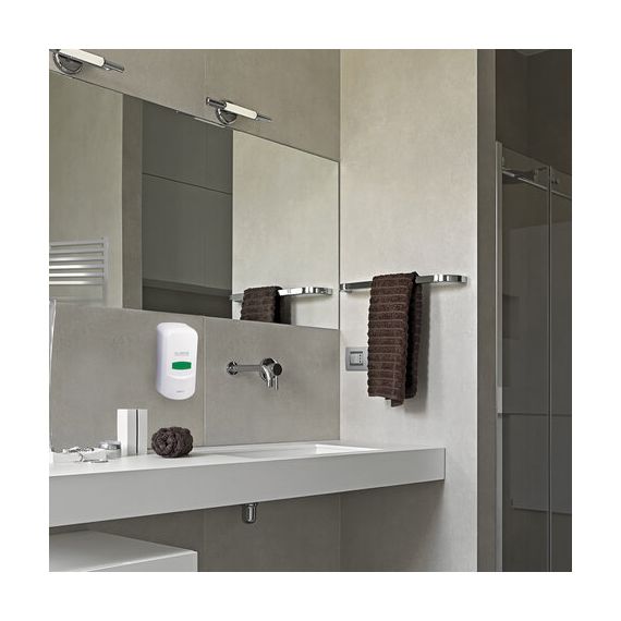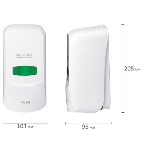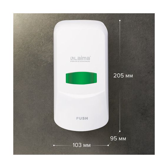 Антивандальный корпус выполнен из ударопрочного пластика ABS. Выдача мыла осуществляется экономичными порциями. Дозатор сочетается с расходными материалами других производителей. Имеется окно для контроля уровня мыла. В комплект входят крепежные материалы.