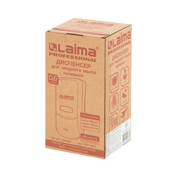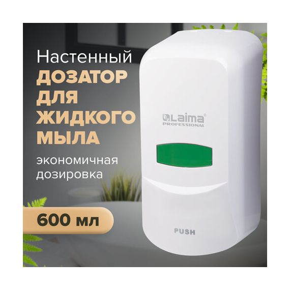 Дозатор для жидкого мыла LAIMA PROFESSIONAL CLASSIC, НАЛИВНОЙ, 0,6 л, белый, ABS-пластик, 601423