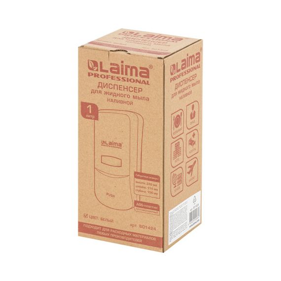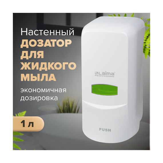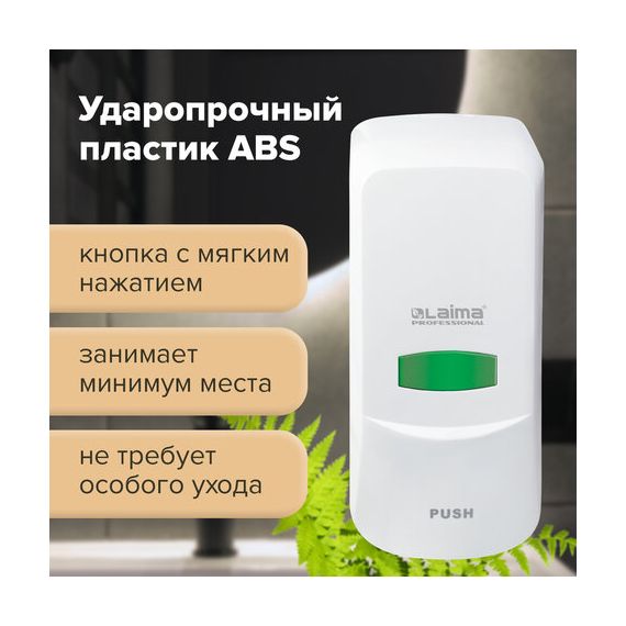Дозатор для жидкого мыла LAIMA PROFESSIONAL CLASSIC, НАЛИВНОЙ, 1 л, белый, ABS-пластик, 601424