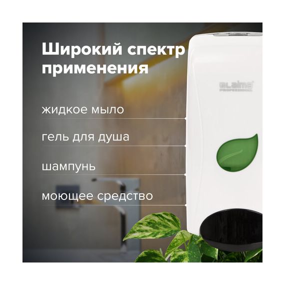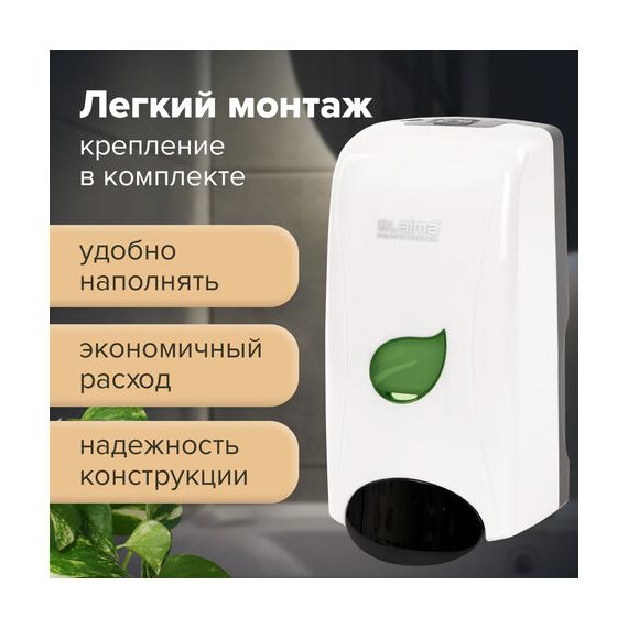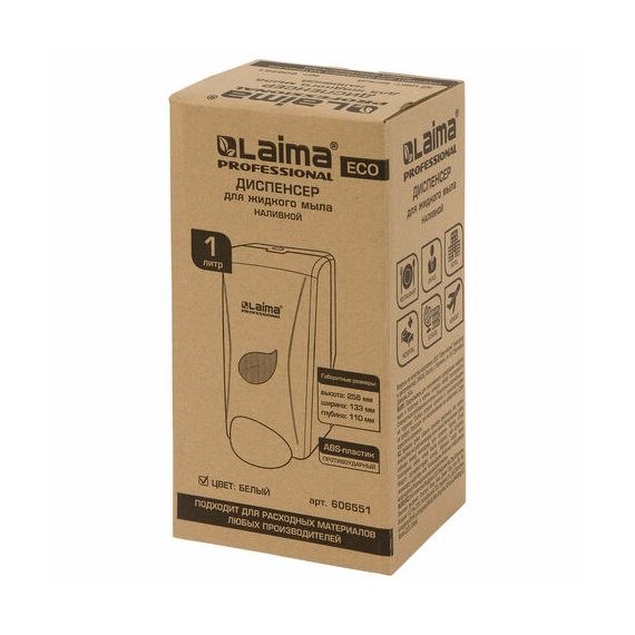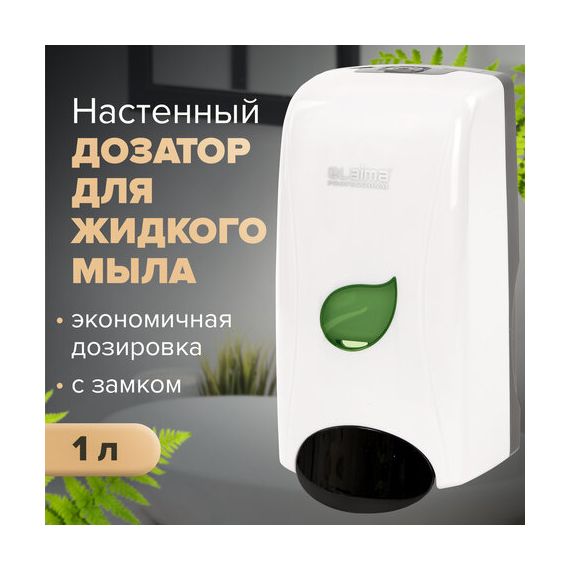 Дозатор для жидкого мыла LAIMA PROFESSIONAL ECO, НАЛИВНОЙ, 1 л, белый, ABS-пластик, 606551