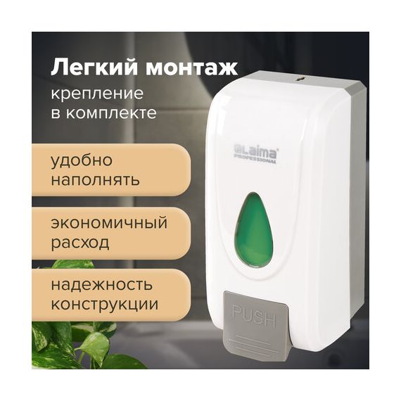 Дозатор для жидкого мыла LAIMA PROFESSIONAL ECONOMY, НАЛИВНОЙ, 1 л, ABS-пластик, белый, 607321, X-2228-1
