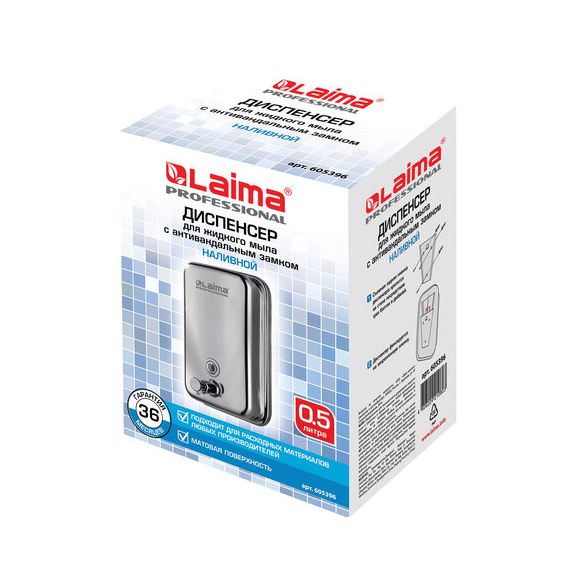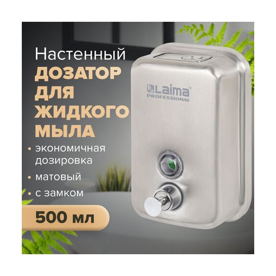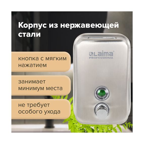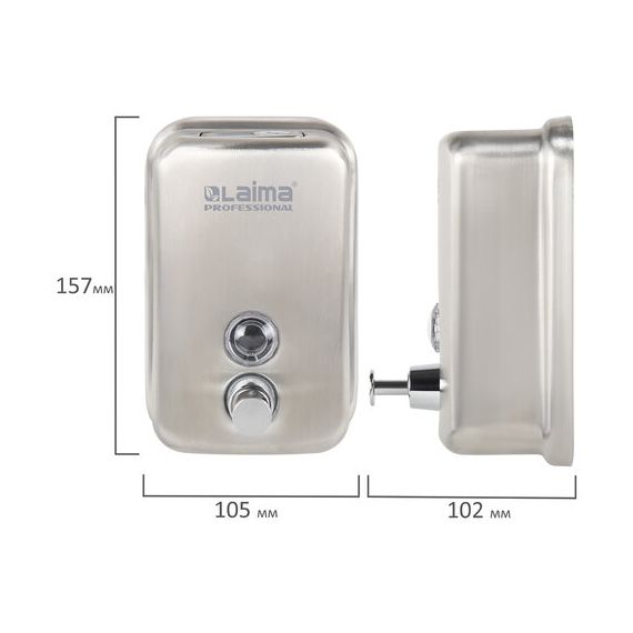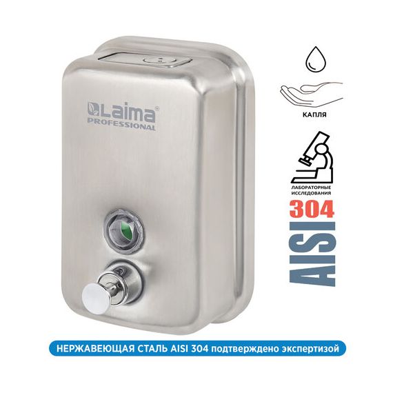 Дозатор для жидкого мыла LAIMA PROFESSIONAL INOX (гарантия 3 года), 0,5 л, нержавеющая сталь, матовый, 605396