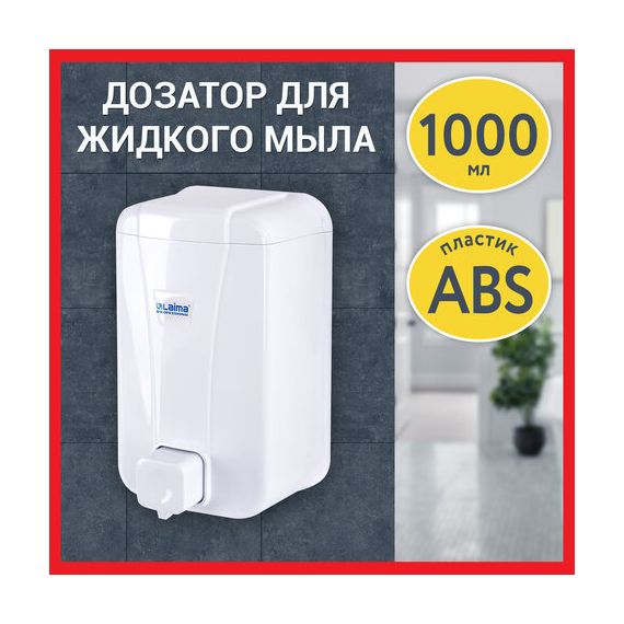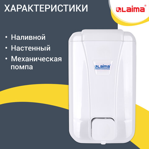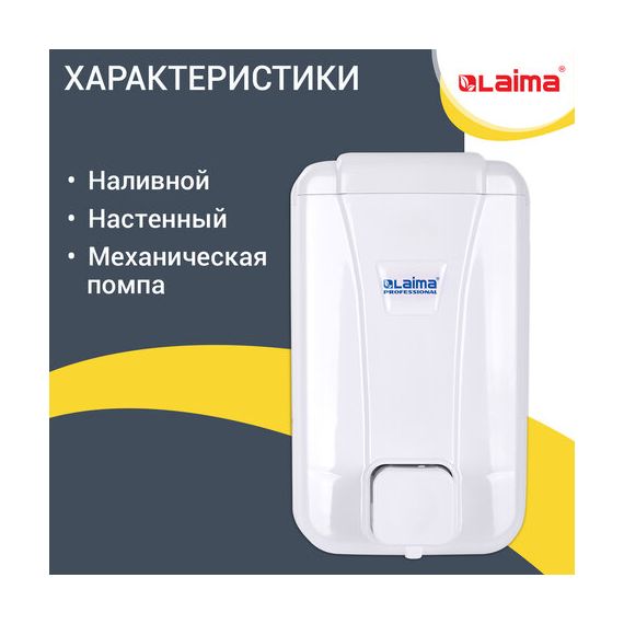 Дозатор для жидкого мыла LAIMA PROFESSIONAL LSA, НАЛИВНОЙ, объем 1 л, цвет белый, 607995, 3430-0