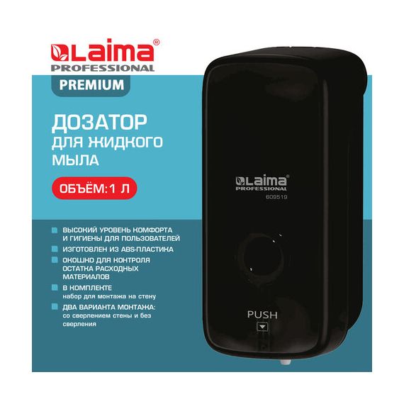 Дозатор для жидкого мыла LAIMA PROFESSIONAL PREMIUM BLACK, НАЛИВНОЙ, 1 л, черный, ABS-пластик, 609519
