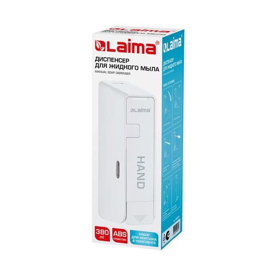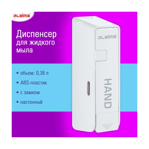 Дозатор для жидкого мыла LAIMA ULTRA, НАЛИВНОЙ, 0,38 л, белый, ABS-пластик, 609106, MD-9029W