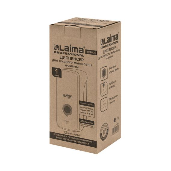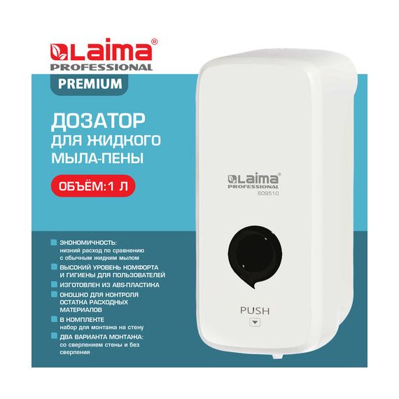 Дозатор для жидкого мыла-пены LAIMA PROFESSIONAL PREMIUM, НАЛИВНОЙ, 1 л, белый, ABS-пластик, 609510
