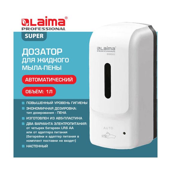 Настенный сенсорный дозатор LAIMA PROFESSIONAL SUPER – незаменимое в современной действительности решение для обеспечения повышенного уровня гигиены в общественных местах.