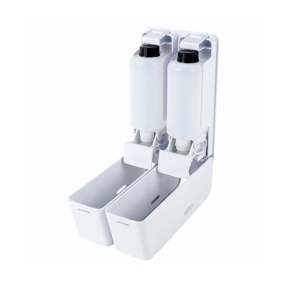 Дозатор двойной 2х0,38 л для жидкого мыла/шампуня/геля LAIMA ULTRA, НАЛИВНОЙ, белый, 609107, MD-9029W-2
