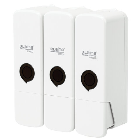 Дозатор тройной 3 х 0,3 л для жидкого мыла/шампуня/геля LAIMA PREMIUM, НАЛИВНОЙ, белый, 609500