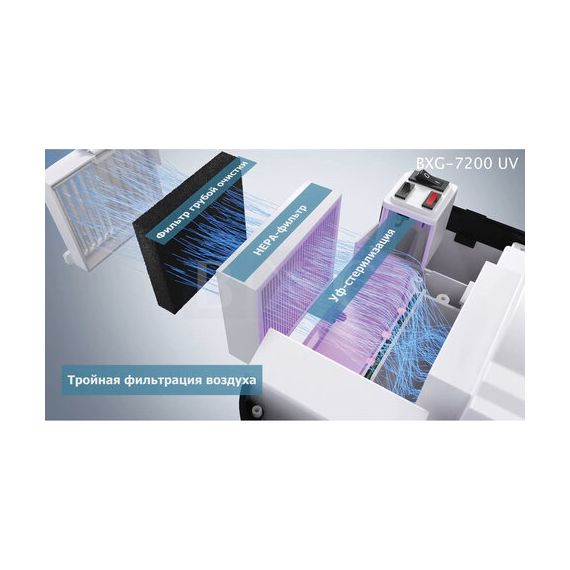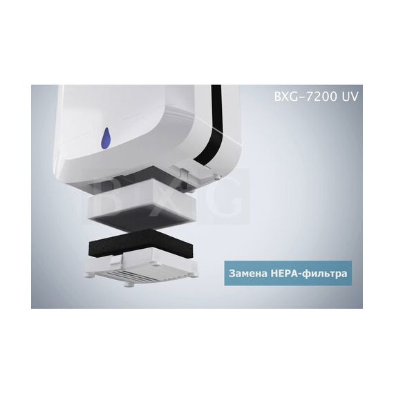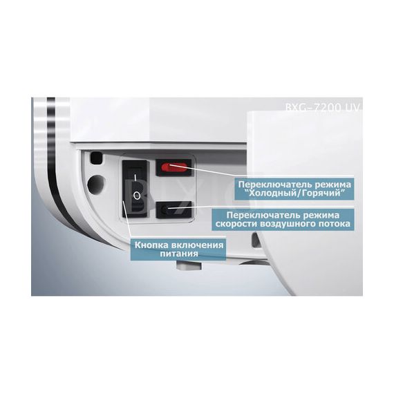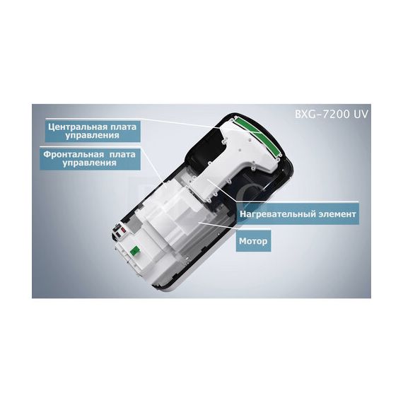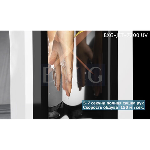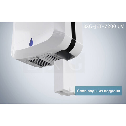 Сушилка для рук BXG-JET-7200, 1650 Вт, ультрафиолет, погружного типа, время сушки 10 секунд, пластик, белая