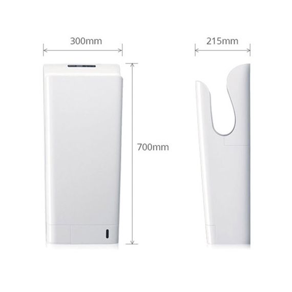 Сушка рук за 10 секунд. Двухсторонняя система обдува рук состоит из 300 форсунок, из которых каждую секунду проходит до 30 литров воздуха со скоростью 95 м/сек. В результате плоские потоки воздуха "срезают" воду с рук.