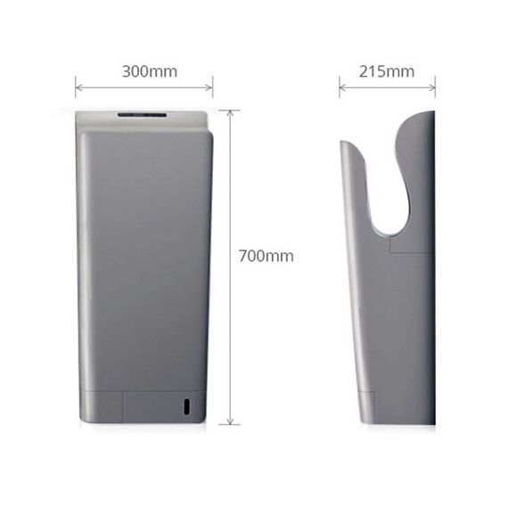 Сушка рук за 8 секунд. Двухсторонняя система обдува рук состоит из 300 форсунок, из которых каждую секунду проходит до 30 литров воздуха со скоростью 95 м/сек. В результате плоские потоки воздуха "срезают" воду с рук.
