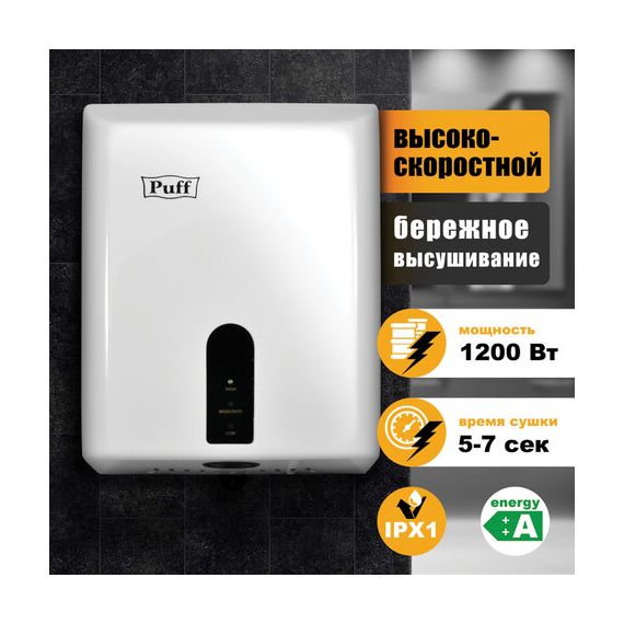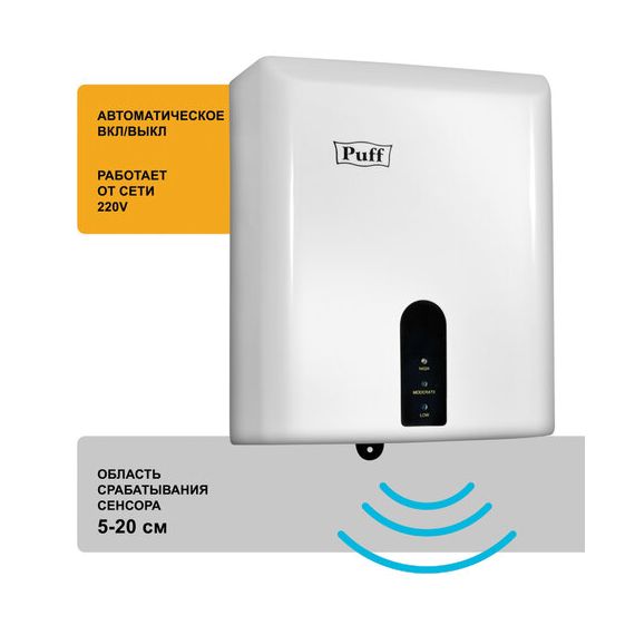 Сушилка для рук PUFF-8810 — это современное и практичное решение для быстрой и гигиеничной сушки рук в общественных местах. Благодаря автоматическому сенсорному включению устройство активируется мгновенно, как только вы подносите руки, и отключается после использования, исключая лишние касания и обеспечивая максимальную чистоту.