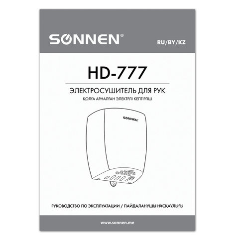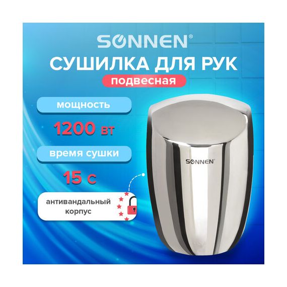Сушилка для рук SONNEN HD-777, 1200 Вт, нержавеющая сталь, антивандальная, хром, 604748