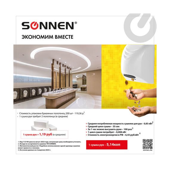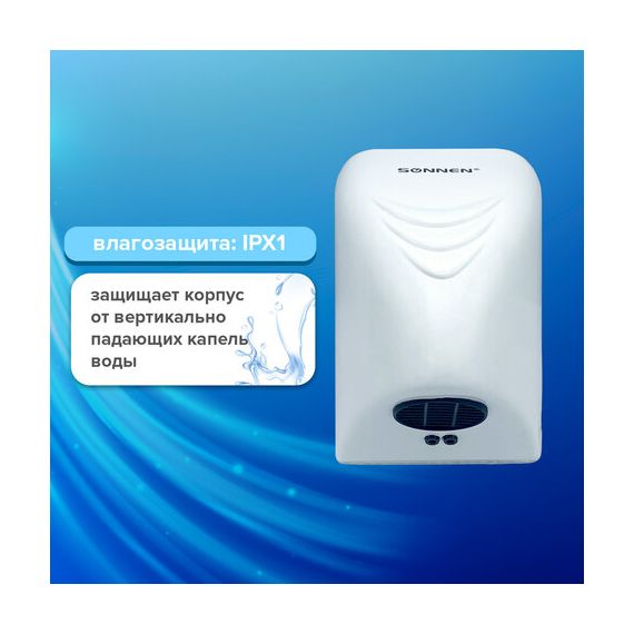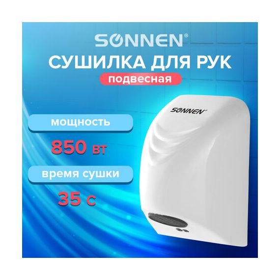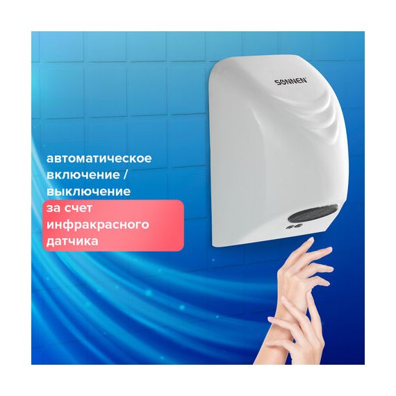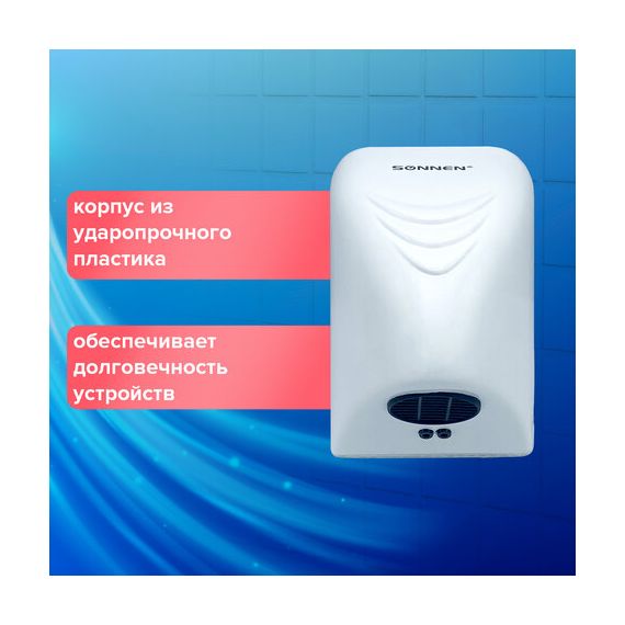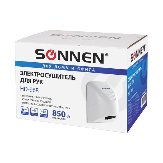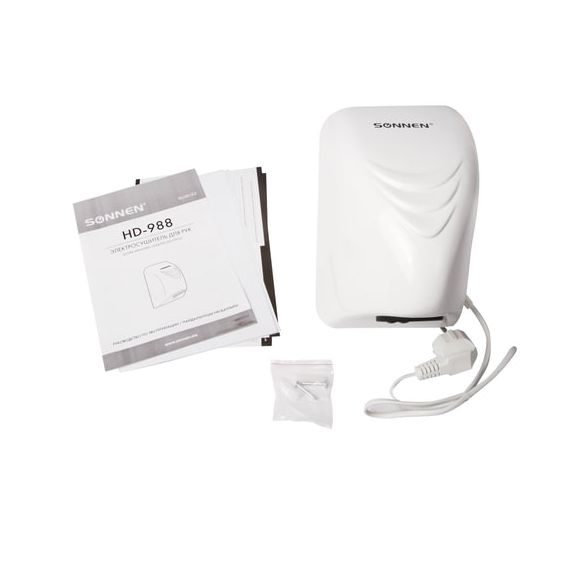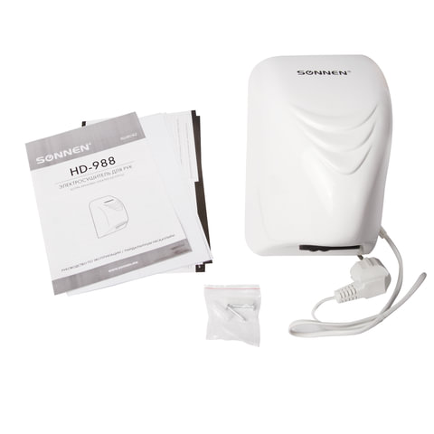 Сушилка для рук SONNEN HD-988, 850 Вт, пластиковый корпус, белая, 604189