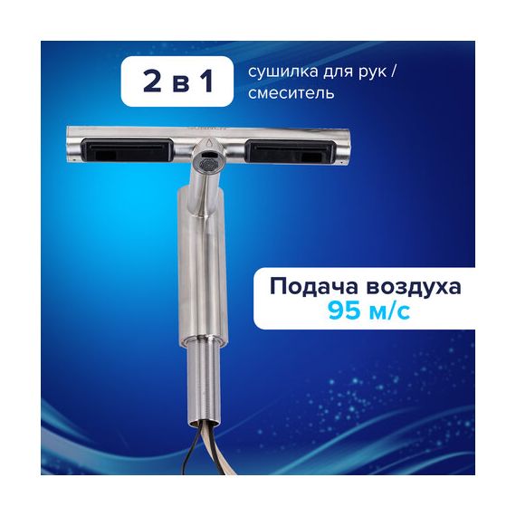 Мощность 1200 Вт обеспечивает время сушки рук всего за 15 секунд. Стандарт IP24 гарантирует защиту от брызг. Инфракрасные сенсоры отвечают за подачу воды и сушку рук.