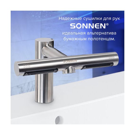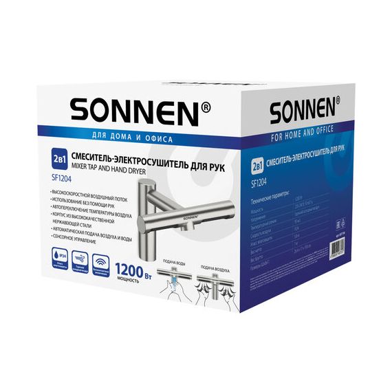 Сушилка для рук, встроенная в смеситель с подачей воды, сенсорная, SONNEN SF1204, 1200 Вт, 95 м/с, IP24, нержавеющая сталь, 607194
