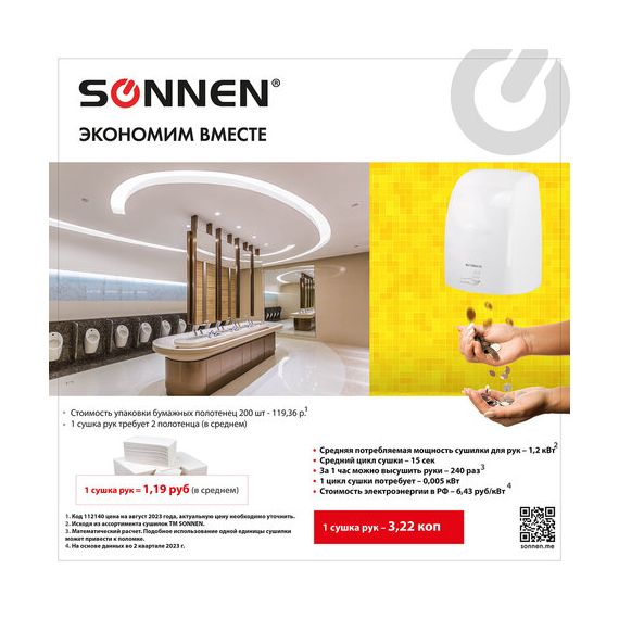 Сушилку для рук SONNEN HD-FL-2009 рекомендуется устанавливать в ванных комнатах/санузлах при расчете одна сушилка на одну раковину.