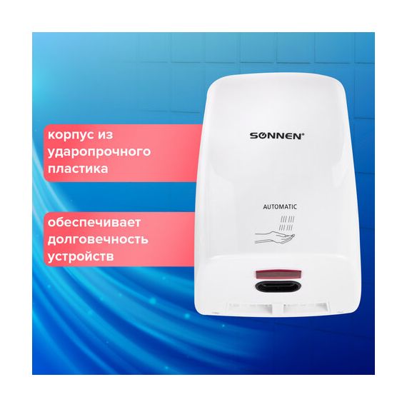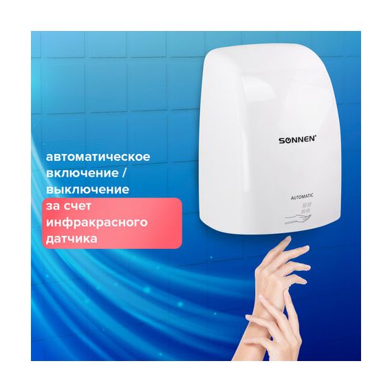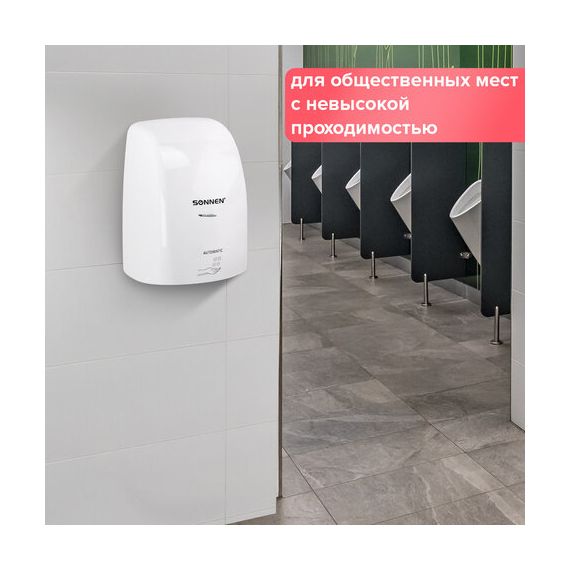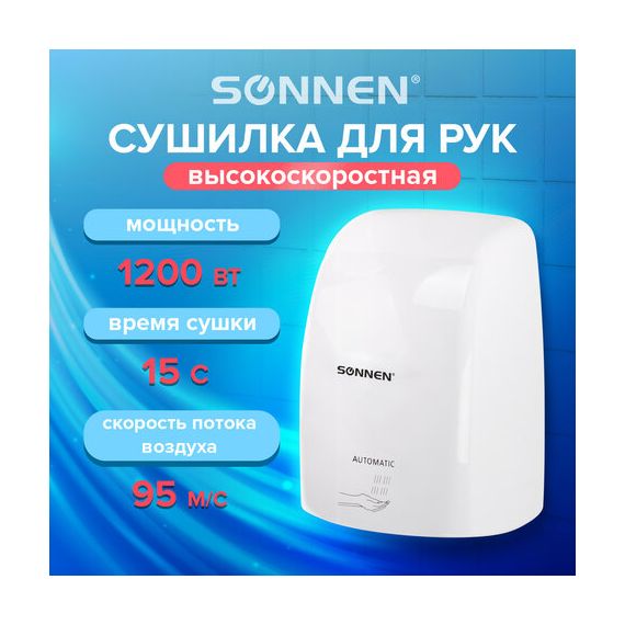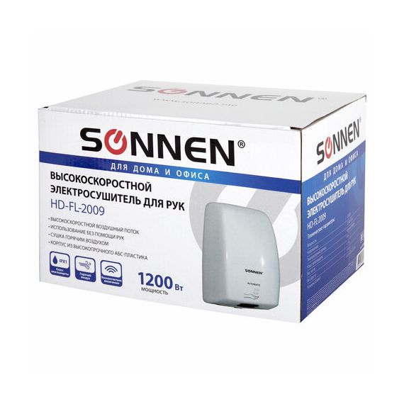 Сушилка ВЫСОКОСКОРОСТНАЯ для рук SONNEN HD-FL-2009, 1200 Вт, пластиковый корпус, белая, 607959