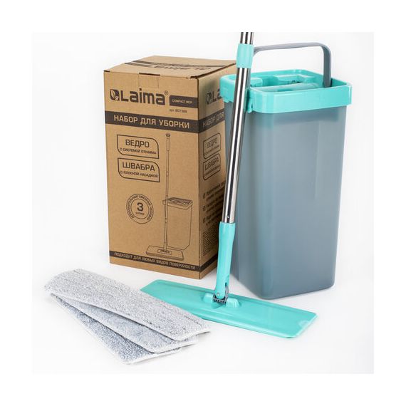 Удобный и компактный набор для уборки LAIMA идеален как для домашнего использования, так и для уборки небольшого офиса. В комплект входит: Швабра с 3 насадками МОП в комплекте, прямоугольное ведро с двумя отсеками (чистая/грязная вода) и тунельный отжим.