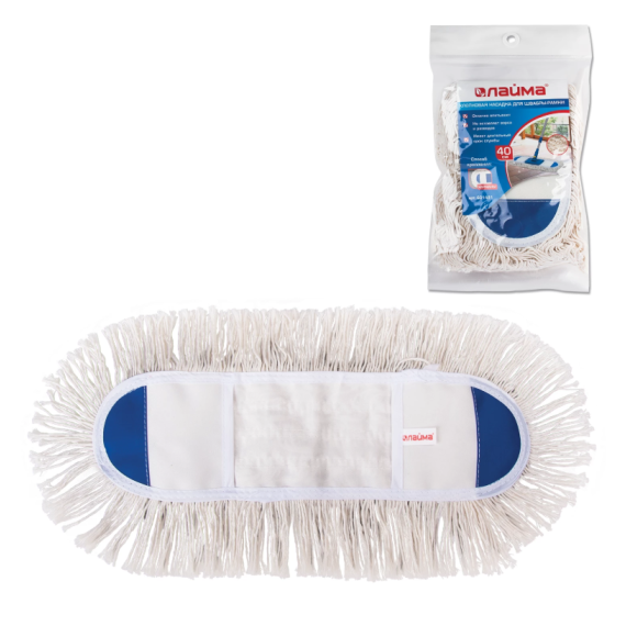 МОП имеет форму плоского прямоугольника, такая форма и чистящая поверхность из ворса длиной 5 см позволяет удобно собрать грязь по углам и захватить большую площадь убираемой поверхности, что в свою очередь уменьшает временные затраты на уборку больших площадей. Устойчива к износу, что обеспечивает долгий срок службы уборочного инструмента. Выполнена из хлопка, имеет размер 40х11 см. Максимальный объем впитывания – 300 мл. Используется в комплекте со шваброй, крепится к держателю с помощью карманов.