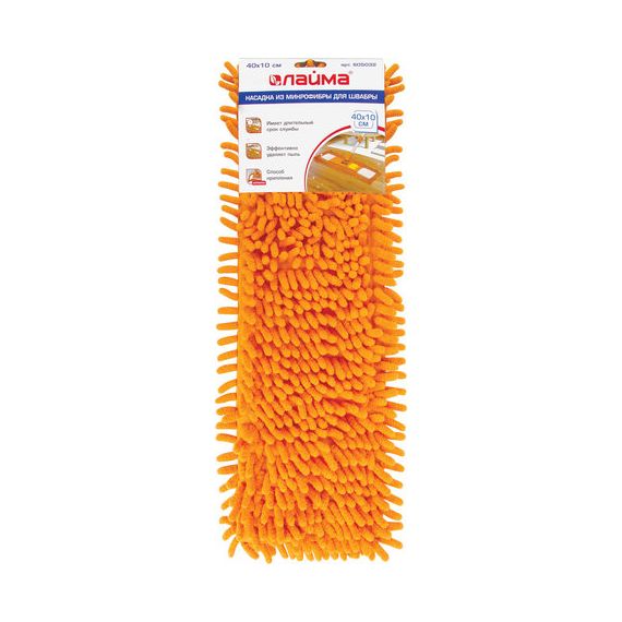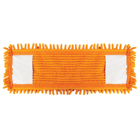 Моп имеет форму плоского прямоугольника, такая форма и чистящая поверхность из ворса длиной 3 см позволяет удобно собрать грязь по углам и захватить большую площадь убираемой поверхности, что в свою очередь уменьшает временные затраты на уборку больших площадей. Устойчива к износу, что обеспечивает долгий срок службы уборочного инструмента. Выполнена из микрофибры, имеет размер 40х10 см. Используется в комплекте со шваброй, крепится к держателю с помощью карманов.