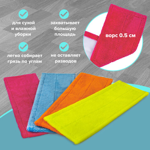 Насадка МОП плоская, УНИВЕРСАЛЬНАЯ для швабр 38-42 см (ТИП К), микрофибра, LAIMA