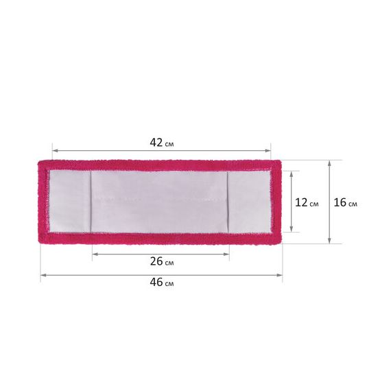 Имеет УНИВЕРСАЛЬНЫЙ ПОСАДОЧНЫЙ размер 42х12 см, что идеально подходит для швабр (ФЛАУНДЕР), размеры которых варьируются по длине от 38-42 см и по ширине от 8-12 см.