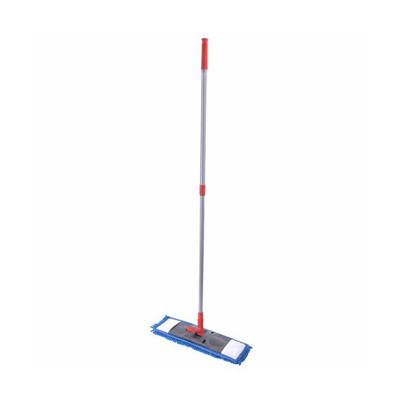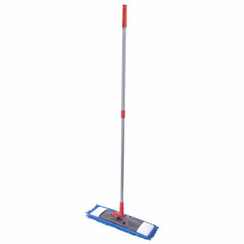 Швабра с телескопической рукояткой 80-120 см для влажной и сухой уборки пола в комплекте с насадкой из ворсистой микрофибры (синель/букли).