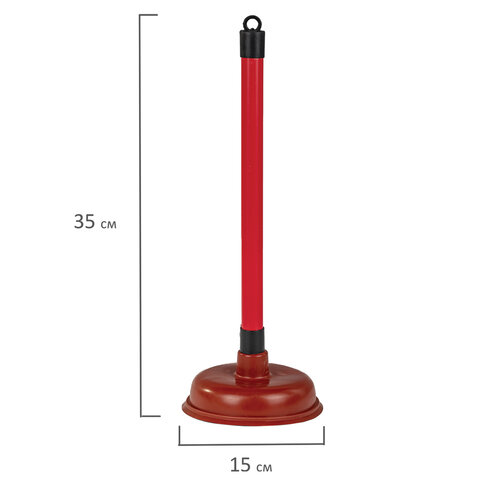 Диаметр клапана 15 см, благодаря чему при прочистке достигается наиболее оптимальный вакуумный захват. Ручка вантуза изготовлена из пластика. Изделие можно хранить на крючке. Изготовлен из полипропилена, ПВХ и резины. Выполнен в красном цвете. Высота - 35 см.