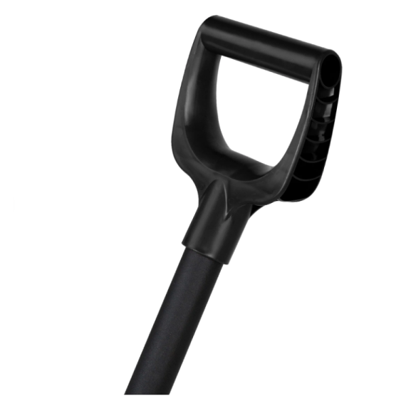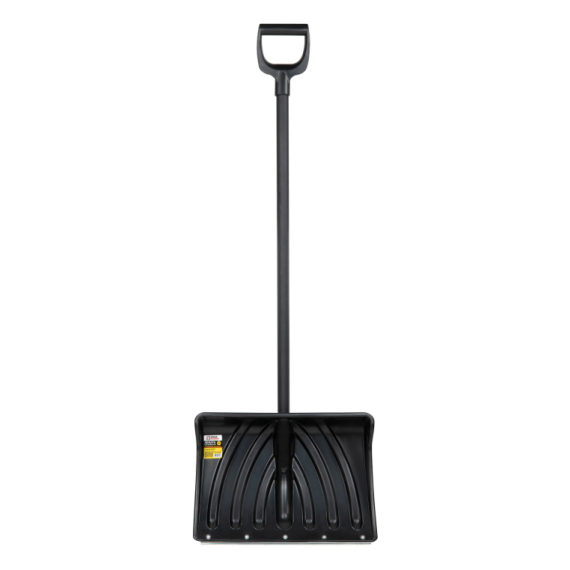 Лопата выполнена из ударопрочного и морозостойкого пластика, который выдерживает эксплуатацию при низких температурах (до -40 °C). Оснащена прочным алюминиевым черенком (порошковая матовая окраска не скользит) с удобной эргономичной V-образной рукояткой.