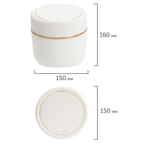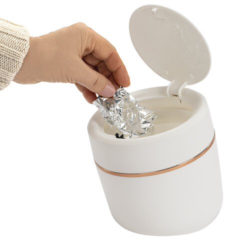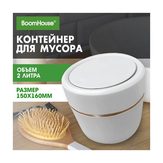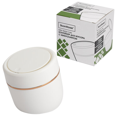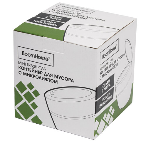 Контейнер, урна, ведерко для мусора с микролифтом НАСТОЛЬНОЕ 2 л, 150х160 мм, белый, BOOMHOUSE (БумХаус), 238900