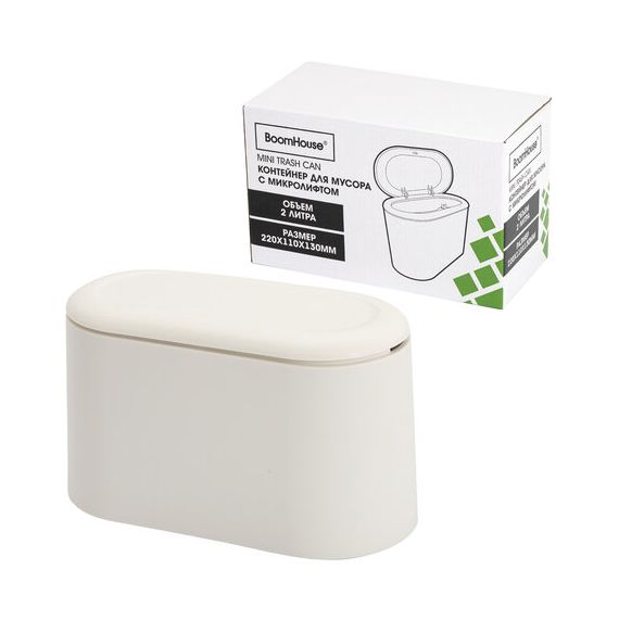 Контейнер, урна, ведерко для мусора с микролифтом НАСТОЛЬНОЕ 2 л, 220х110х130 мм, BOOMHOUSE (БумХаус), 238898