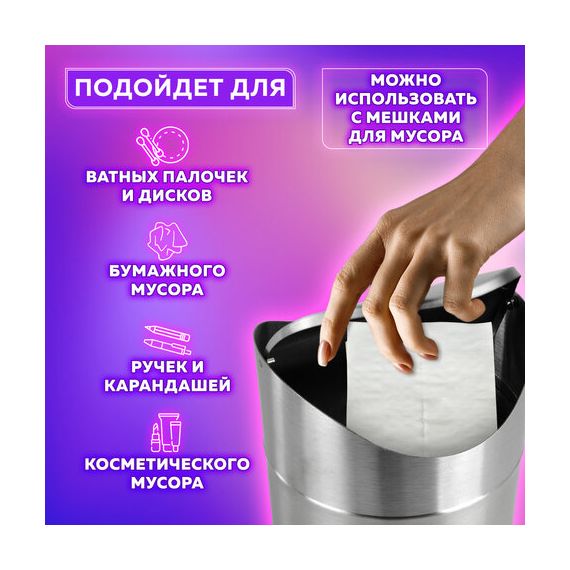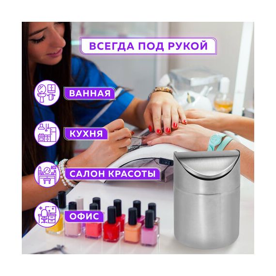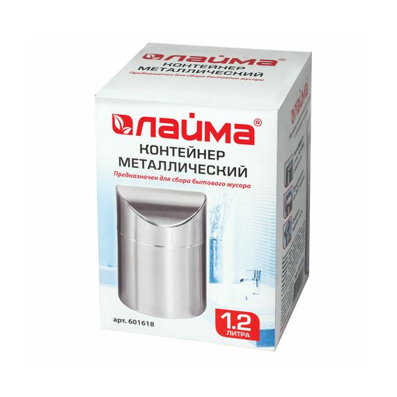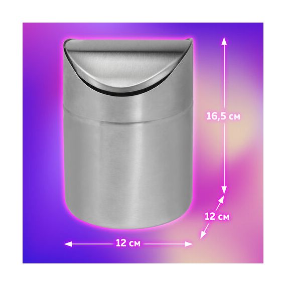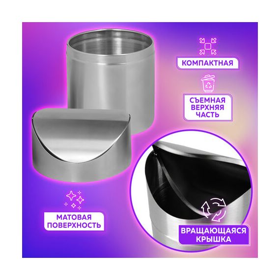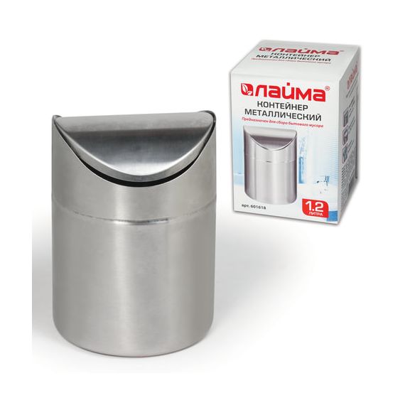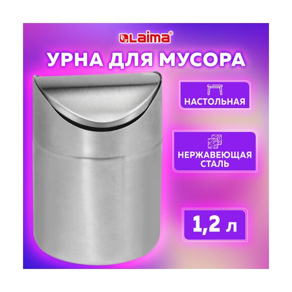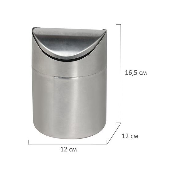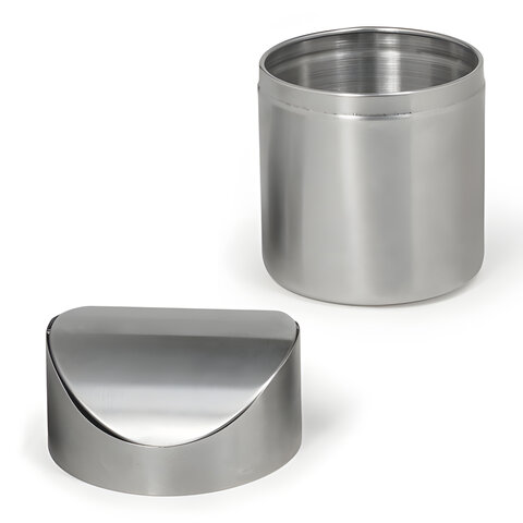 Урна настольная 1,2 литра для мусора с качающейся крышкой, d 12х16,5 см, нержавеющая сталь, LAIMA, 601618