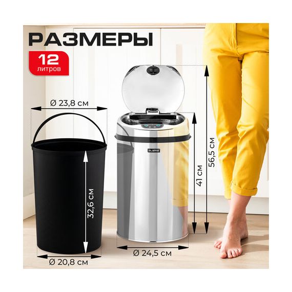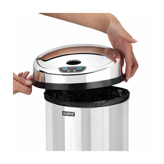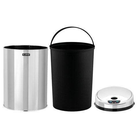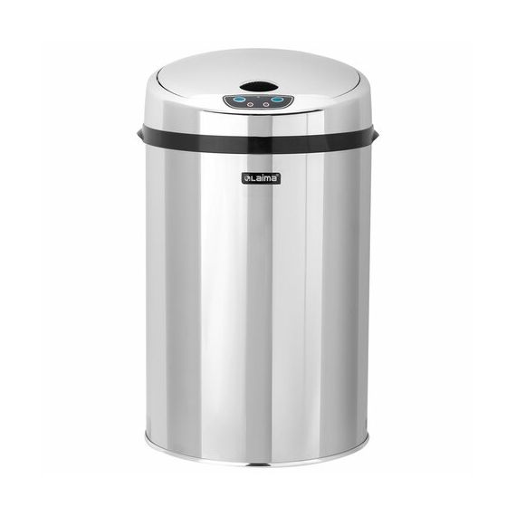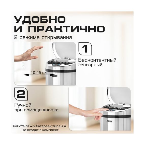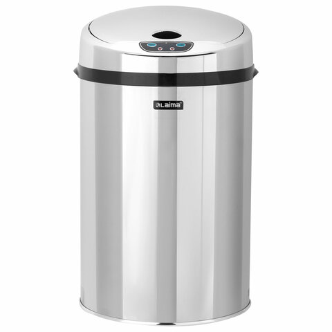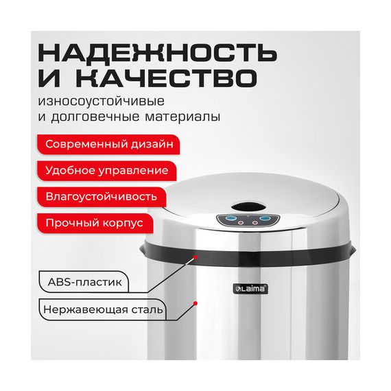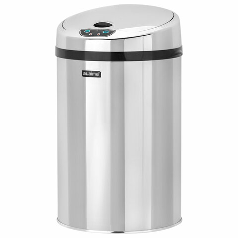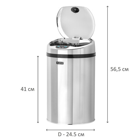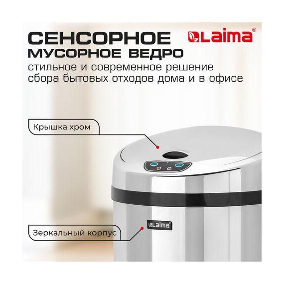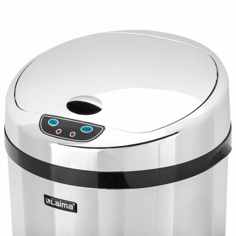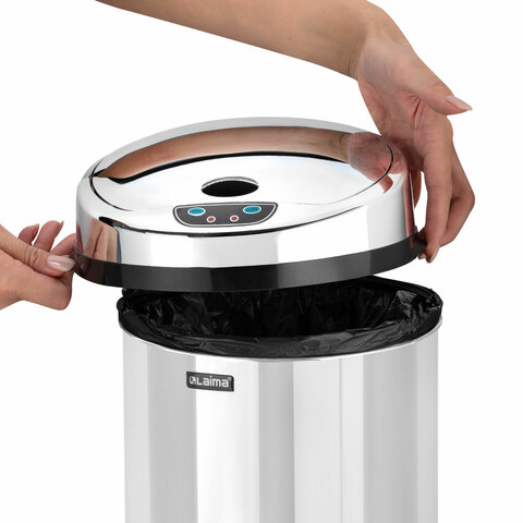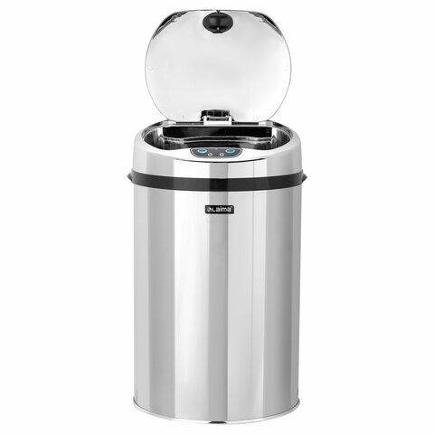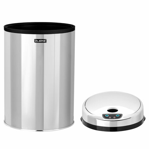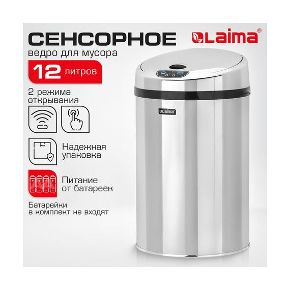 Ведро для мусора СЕНСОРНОЕ 12 л, нержавеющая сталь, зеркальная крышка, питание от 4-х батареек AA (не входят в комплект), LAIMA, 609327