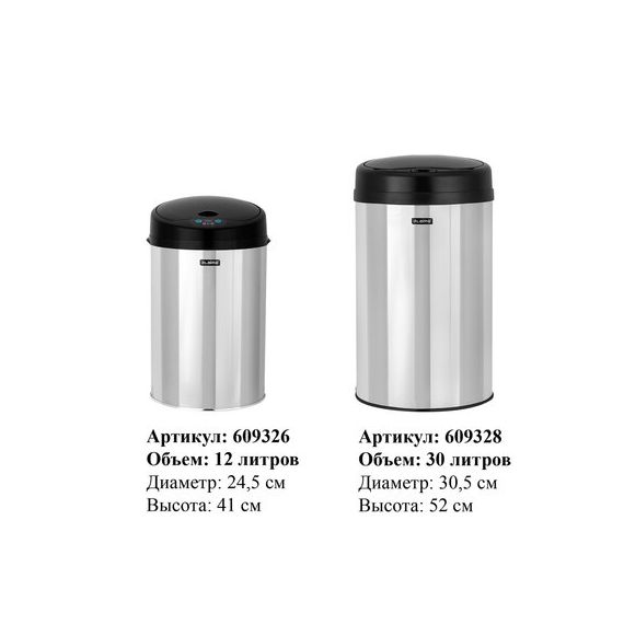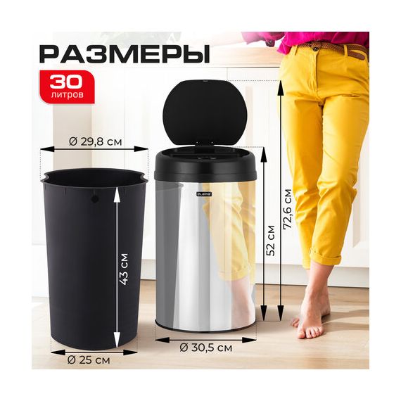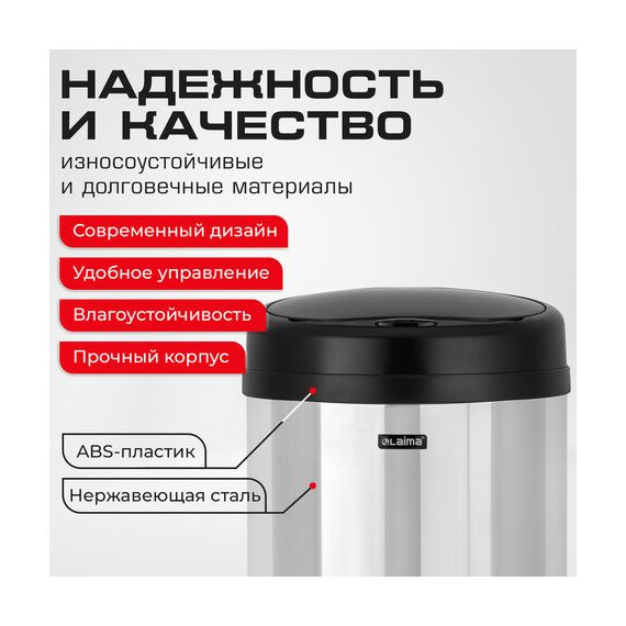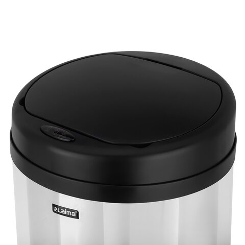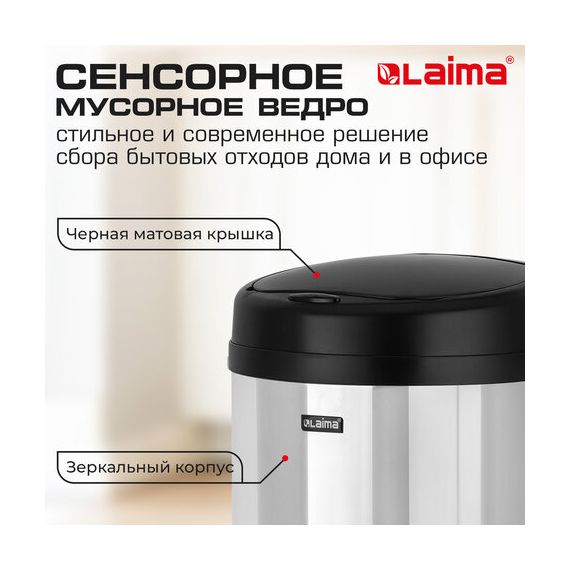 Ведро для мусора СЕНСОРНОЕ 30 л, нержавеющая сталь, черная матовая крышка, питание от 4-х батареек AA (не входят в комплект), LAIMA, 609328