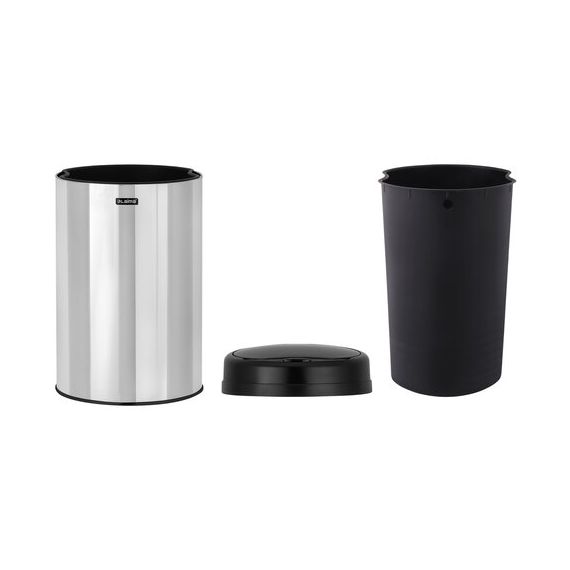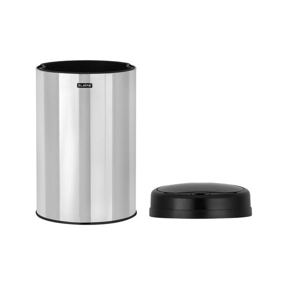 Ведро для мусора изготовлено из нержавеющей стали, обладающей высокой устойчивостью к коррозии и износостойкостью. Поверхность ведра – зеркальная. Крышка – чёрная матовая, выполнена из прочного ABS-пластика.