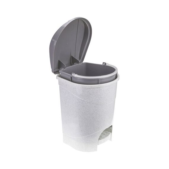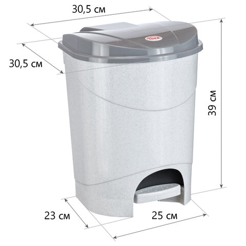 Оснащено педалью для удобства открывания крышки и отдельным внутренним ведром-вкладышем. Ведро-вкладыш можно отдельно вытащить из корпуса (идеально использовать как без мусорного мешка, так и с ним), ведро герметичное и имеет ручку для перемещения.