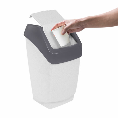 Ведро мусорное с КРЫШКОЙ (качающейся) 15 литров, "ХАПС", 46х26х25 см, серое, IDEA, М 2471