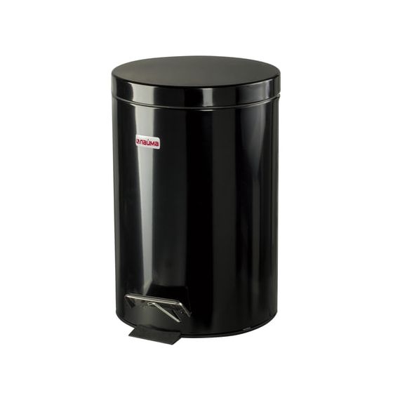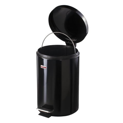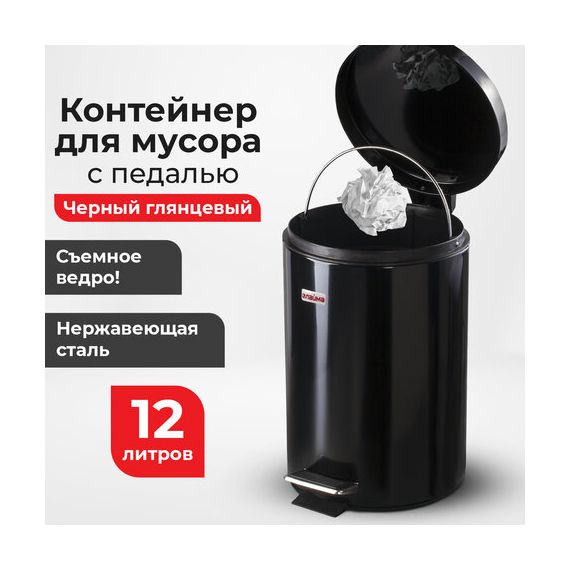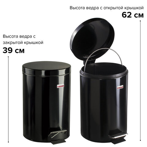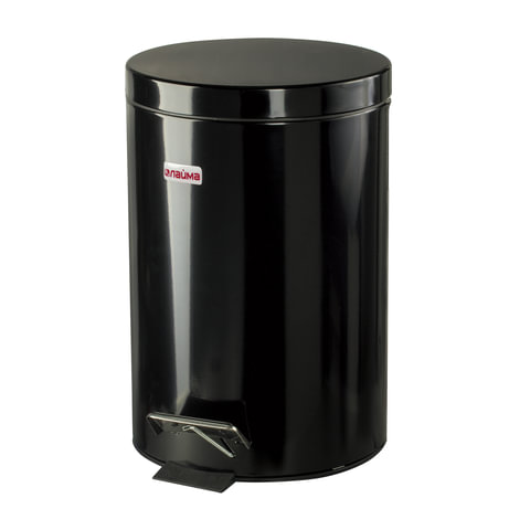 Ведро мусорное с педалью 12 литров "Classic", ЧЕРНОЕ ГЛЯНЦЕВОЕ, металлическое, со съемным внутренним ведром, LAIMA, 602850