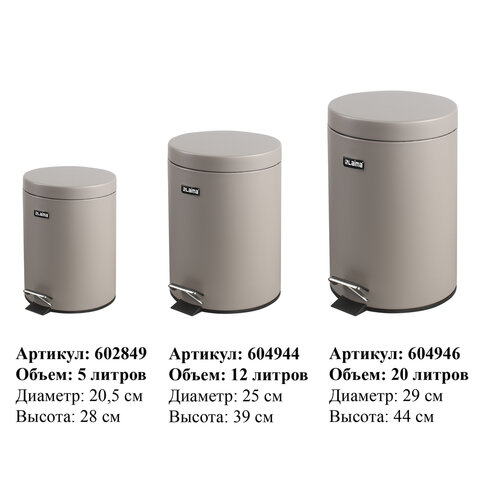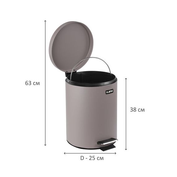 12 л - стандартный объем при средней проходимости. Оборудовано педалью для открывания. Крышка плотно прилегает, тем самым препятствуя распространению запахов. Внутреннее съемное пластиковое ведро имеет удобную рукоятку для извлечения. Изготовлено из нержавеющей стали со специальным антикоррозийным покрытием, что обеспечивает максимально долгий срок службы. Ведро устойчиво благодаря антискользящему основанию. Объем рекомендуемого мешка - 20 л. Контейнер для мусора в сером цвете с матовым покрытием имеет компактные размеры (39х25,2х25,2 см) и отлично впишется в любой интерьер.