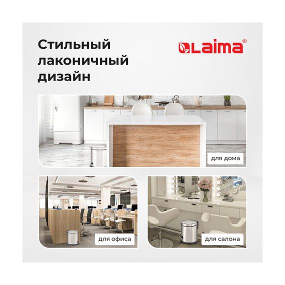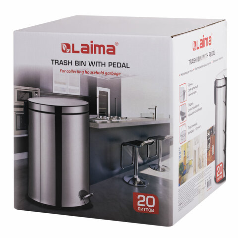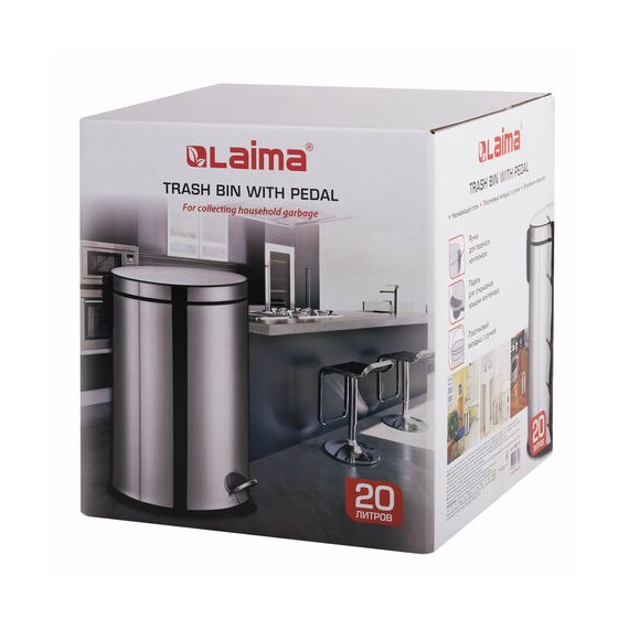 Ведро мусорное с педалью 20 литров "Classic Plus", ЗЕРКАЛЬНОЕ, нержавеющая сталь, со съемным внутренним ведром, LAIMA, ТУРЦИЯ, 608114
