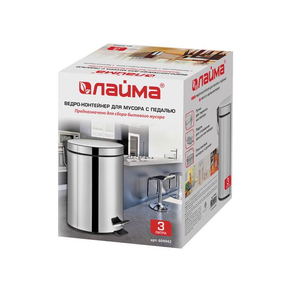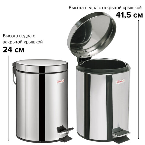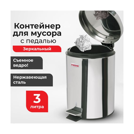 Ведро мусорное с педалью 3 литра "Classic", ЗЕРКАЛЬНОЕ, нержавеющая сталь, со съемным внутренним ведром, LAIMA, 604942