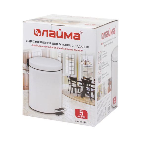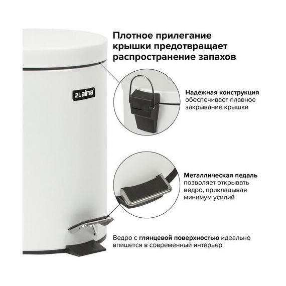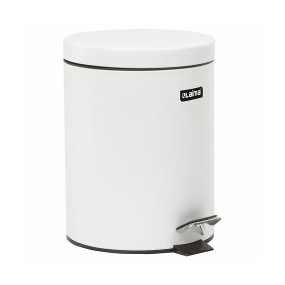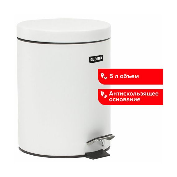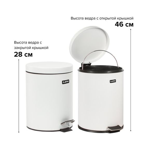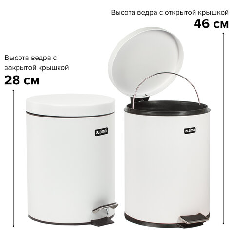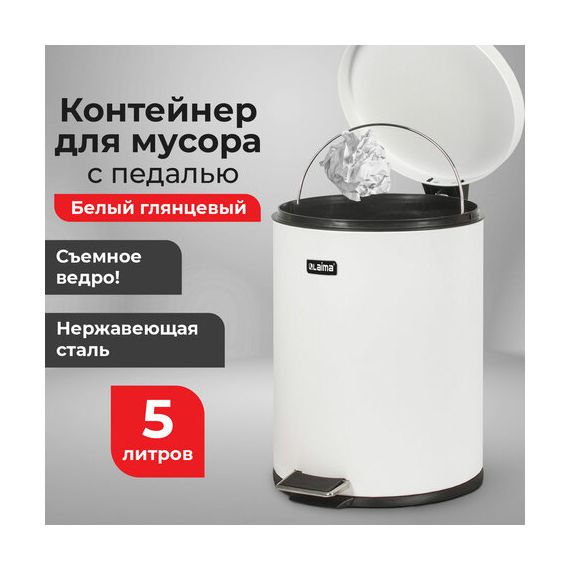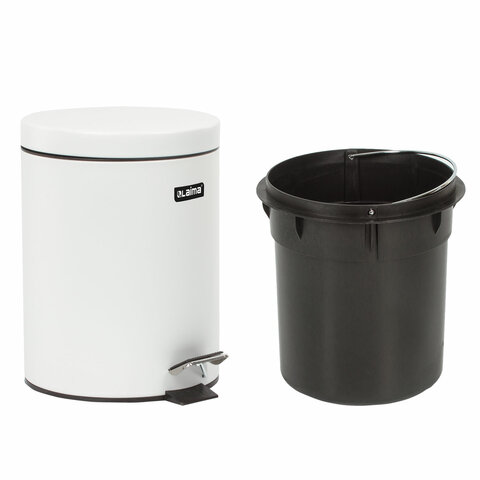 Ведро мусорное с педалью 5 литров "Classic", БЕЛОЕ ГЛЯНЦЕВОЕ, металлическое, со съемным внутренним ведром, LAIMA, 604947