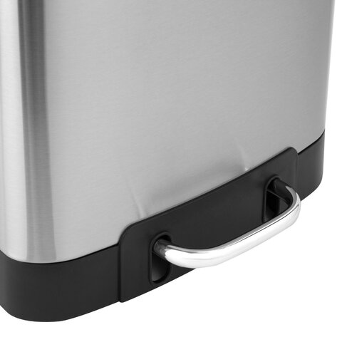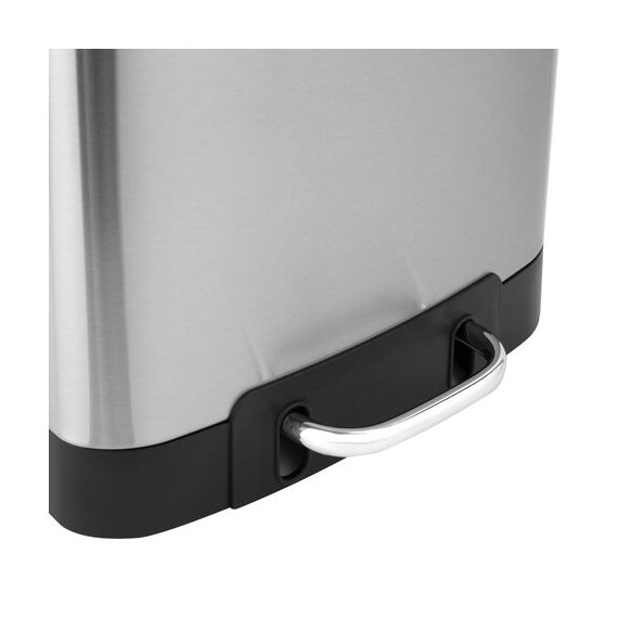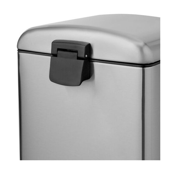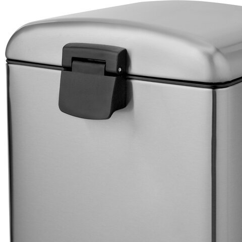 Корпус и крышка ведра изготовлены из матовой нержавеющей стали SS410, на которой не остаются отпечатки пальцев. Ведро устойчиво благодаря антискользящим вставкам. Оборудовано удобной педалью для открывания, позволяя вам выбрасывать мусор, не прикасаясь к ведру. Благодаря встроенному доводчику крышка закрывается плавно и бесшумно. Крышка плотно прилегает к ведру, препятствуя распространению запахов. Внутреннее съемное пластиковое ведро на 6 л имеет специальное отверстие на задней стенке для фиксации мусорного пакета.