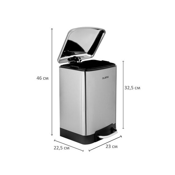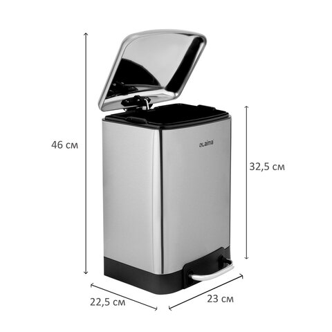 Мусорное ведро в матовом серебристом цвете имеет компактные размеры (32,5х22,5х23 см) и отлично впишется в любой интерьер!