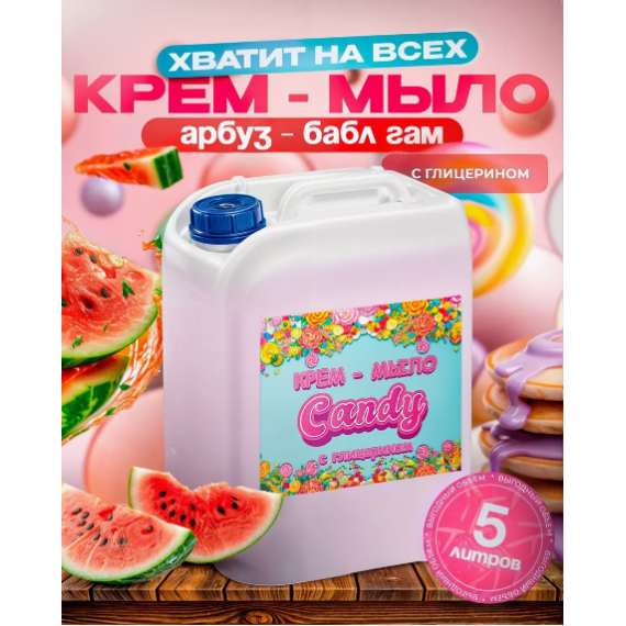 Белорусское жидкое крем-мыло Candy с глицерином и ароматом бабл гам — это идеальное средство для ухода за кожей рук и тела. В удобной упаковке объемом 5 литров, это мыло подходит для использования как в домашних условиях, так и в общественных местах, таких как офисы, рестораны и школы.